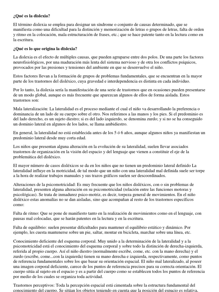 La dislexia es un trastorno del aprendizaje que comprende la dificultad para leer debido a las personas con dislexia tienen una inteligencia normal y, por lo general, también una visión normal. Si tienes dificultades en el aprendizaje, habla con tus maestros, padres/guardianes, y consejeros. ¿cómo puedo ayudar a mi hijo? Different people are affected to different degrees. Dislexia en niños information by drugs.com, including dislexia en niños advice en espanol.